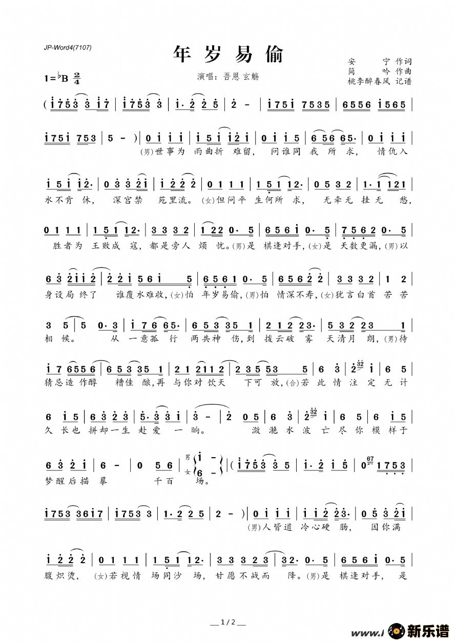 《年岁易偷》简谱 吾恩/玄觞-桃李醉春风制谱