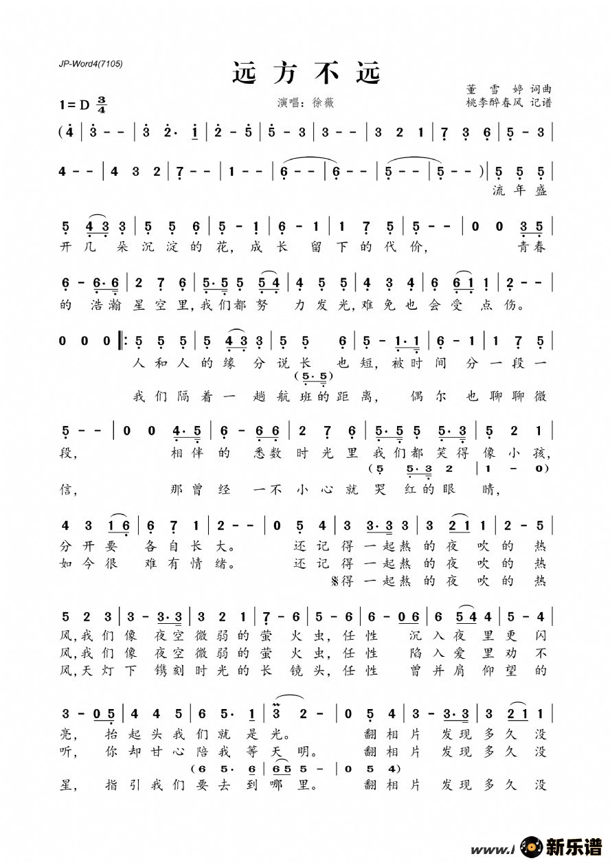 徐薇演唱的远方不远歌词,远方不远简谱.