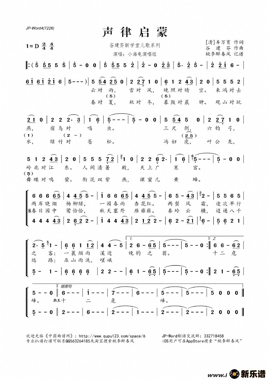 谷建芬新学堂儿歌系列:声律启蒙/小海龟演唱组 相关曲谱
