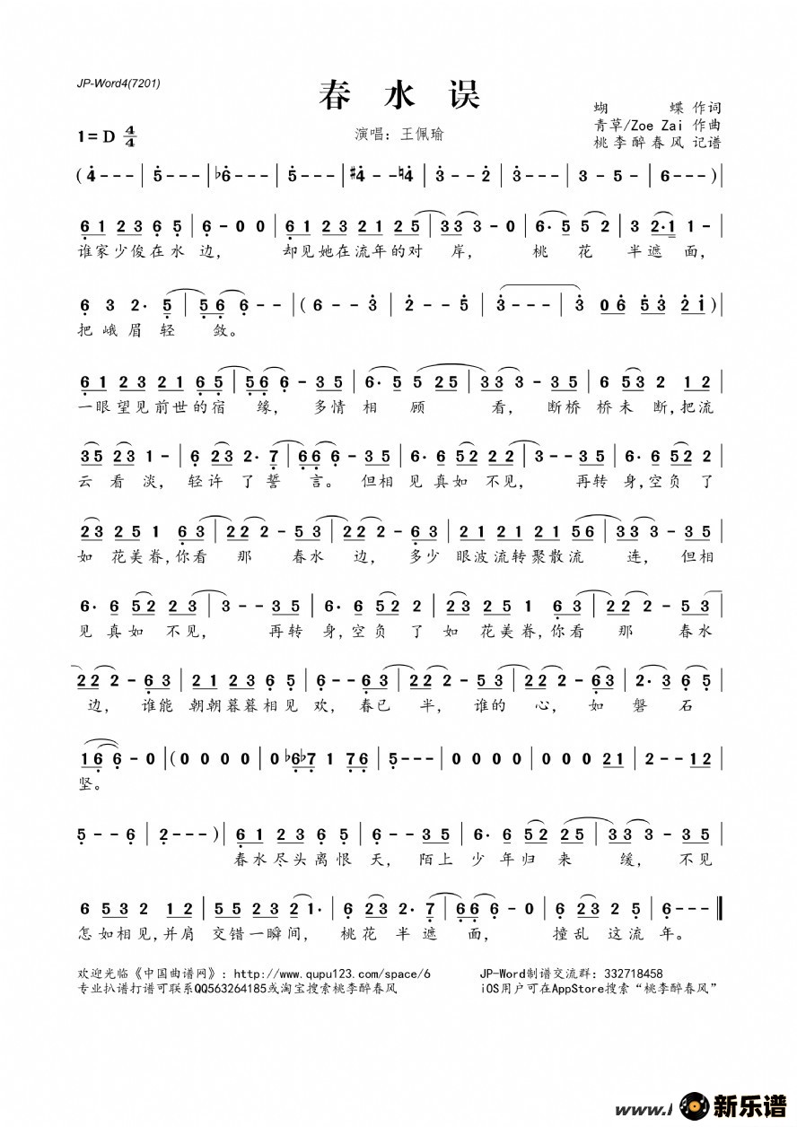 《春水误》简谱 王珮瑜-桃李醉春风制谱