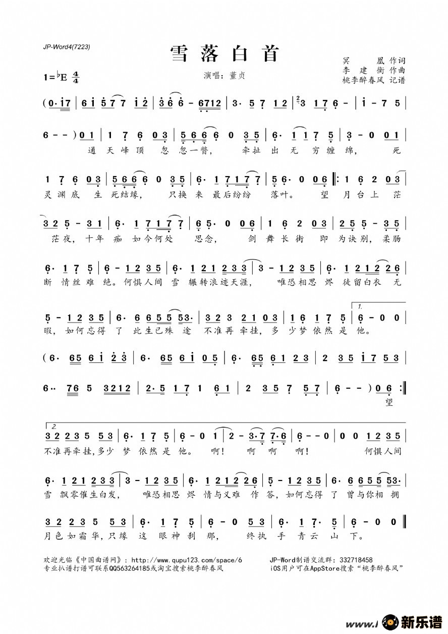 《雪落白首》简谱 董贞-桃李醉春风制谱