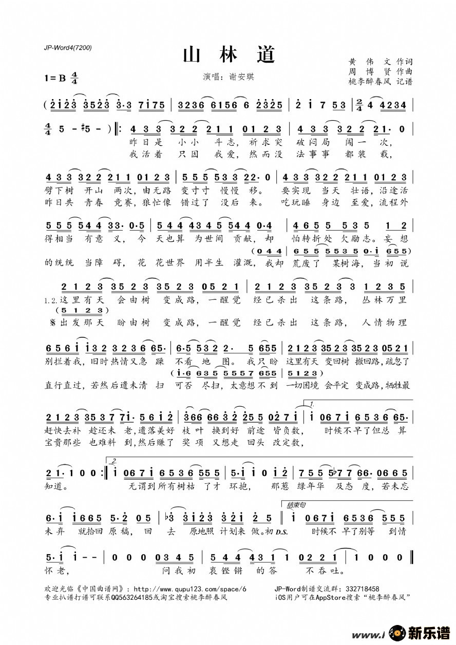 《山林道》简谱 谢安琪-桃李醉春风制谱