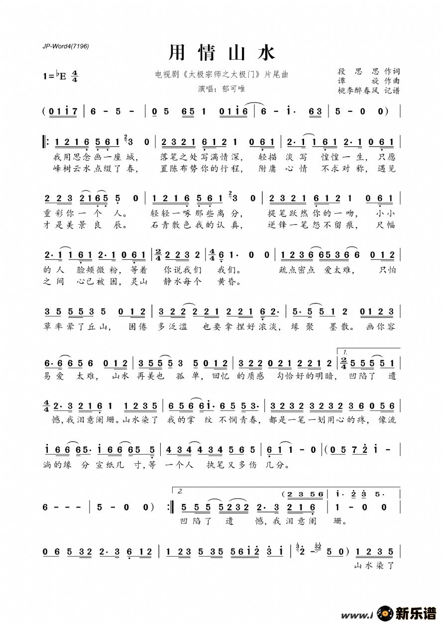 郁可唯演唱的用情山水(电视剧《太极宗师之太极门》片尾曲)歌词,用情山水(电视剧《太极宗师之太极门》片尾曲)简谱.
