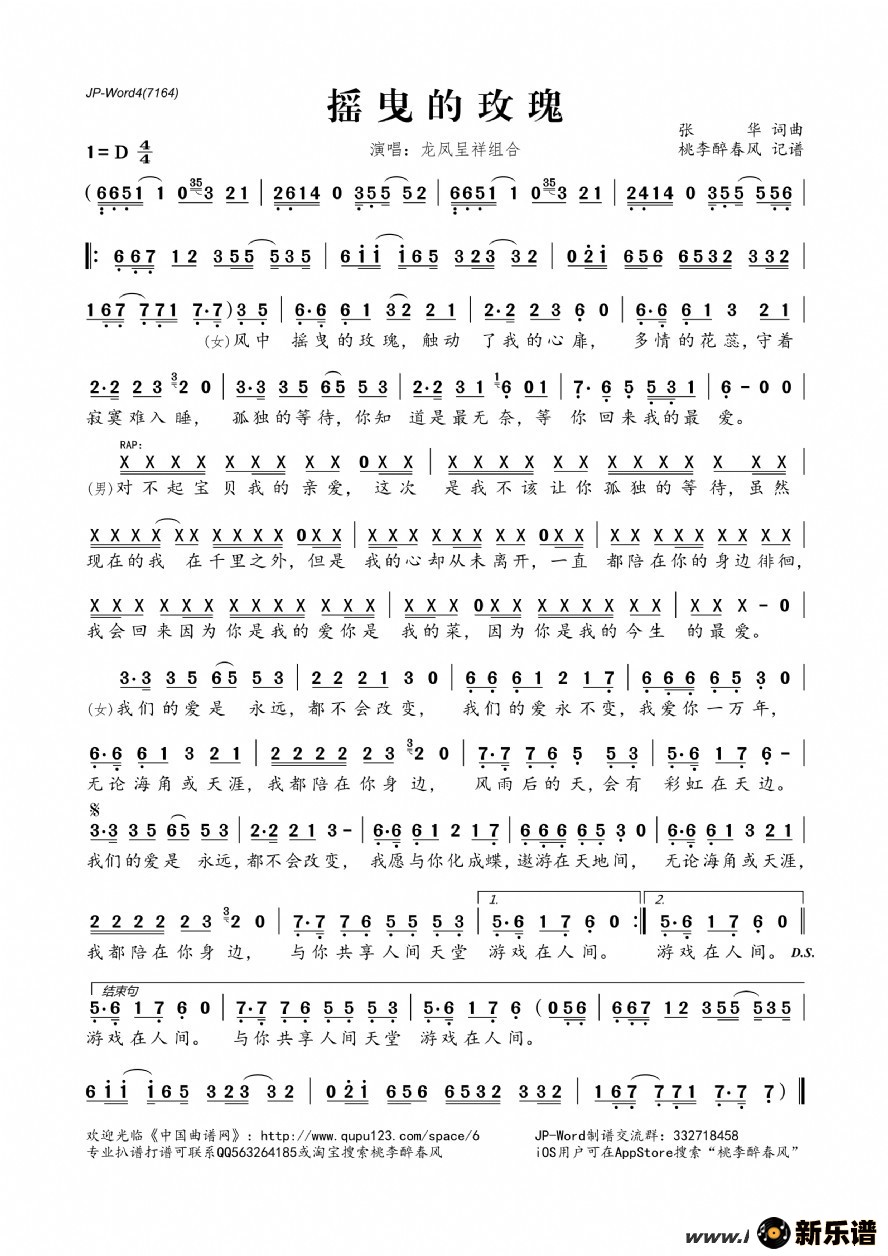 龙凤呈祥组合演唱的摇曳的玫瑰歌词,摇曳的玫瑰简谱.
