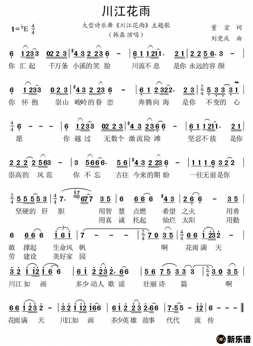 韩磊演唱的川江花雨(大型诗乐舞《川江花雨》主题歌)歌词,川江花雨(大型诗乐舞《川江花雨》主题歌)简谱.