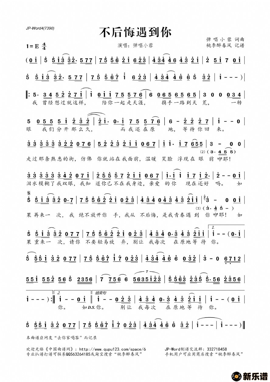 弹唱小蓉演唱的不后悔遇到你歌词,不后悔遇到你简谱.