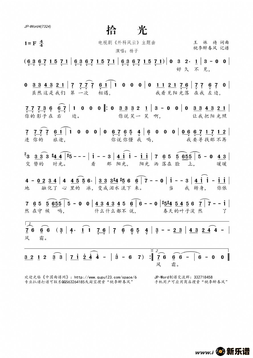 杨子演唱的拾光(电视剧《外科风云》主题曲)歌词,拾光(电视剧《外科风云》主题曲)简谱.