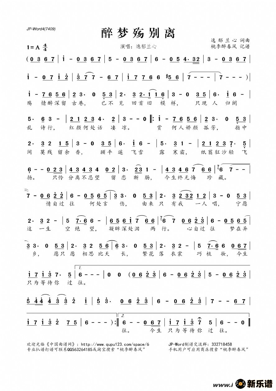 逸郁兰心演唱的醉梦殇别离歌词,醉梦殇别离简谱.