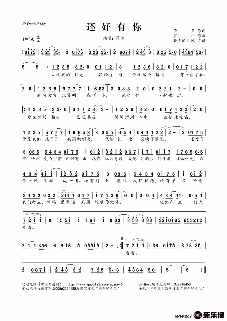 《还好有你》简谱 陈瑞-桃李醉春风制谱