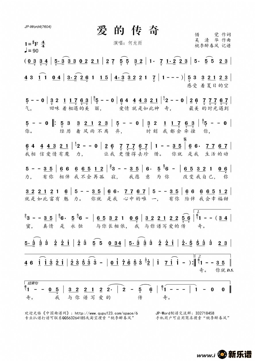 何龙雨演唱的爱的传奇歌词,爱的传奇简谱.