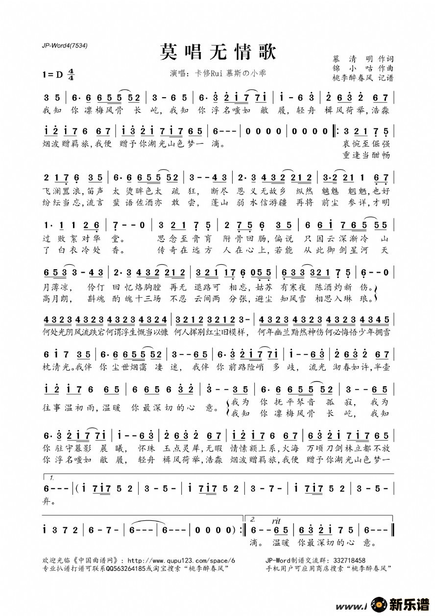 《莫唱无情歌》简谱 卡修Rui/慕斯の小乖-桃李醉春风制谱