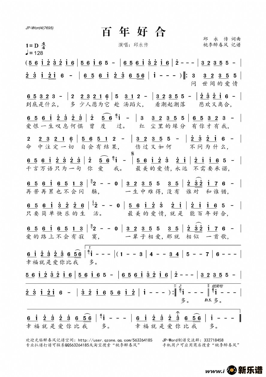 《百年好合》简谱 邱永传-桃李醉春风制谱