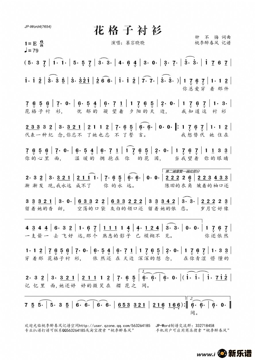 《花格子衬衫》简谱 慕容晓晓-桃李醉春风制谱