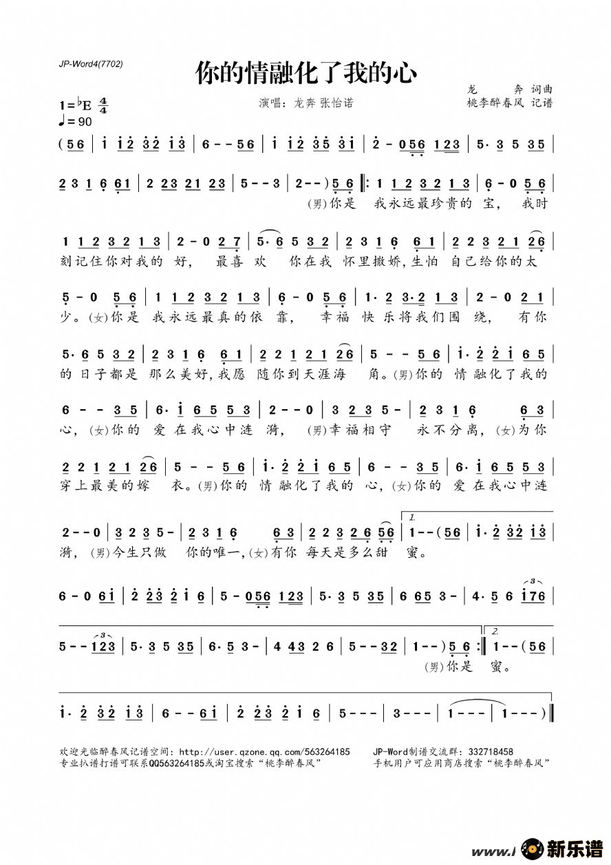 《你的情融化了我的心》简谱 龙奔/张怡诺-桃李醉春风制谱