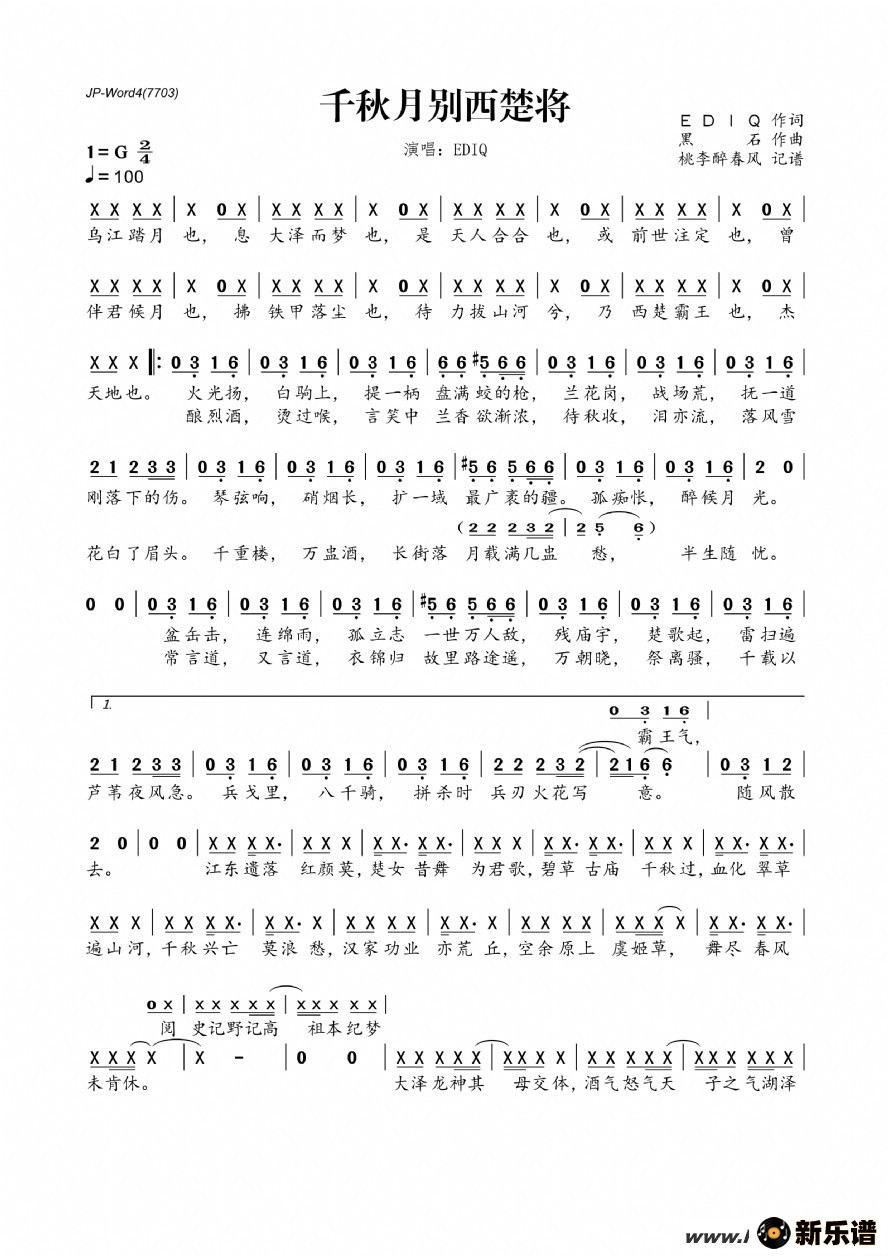 《千秋月别西楚将》简谱 ediq-桃李醉春风制谱