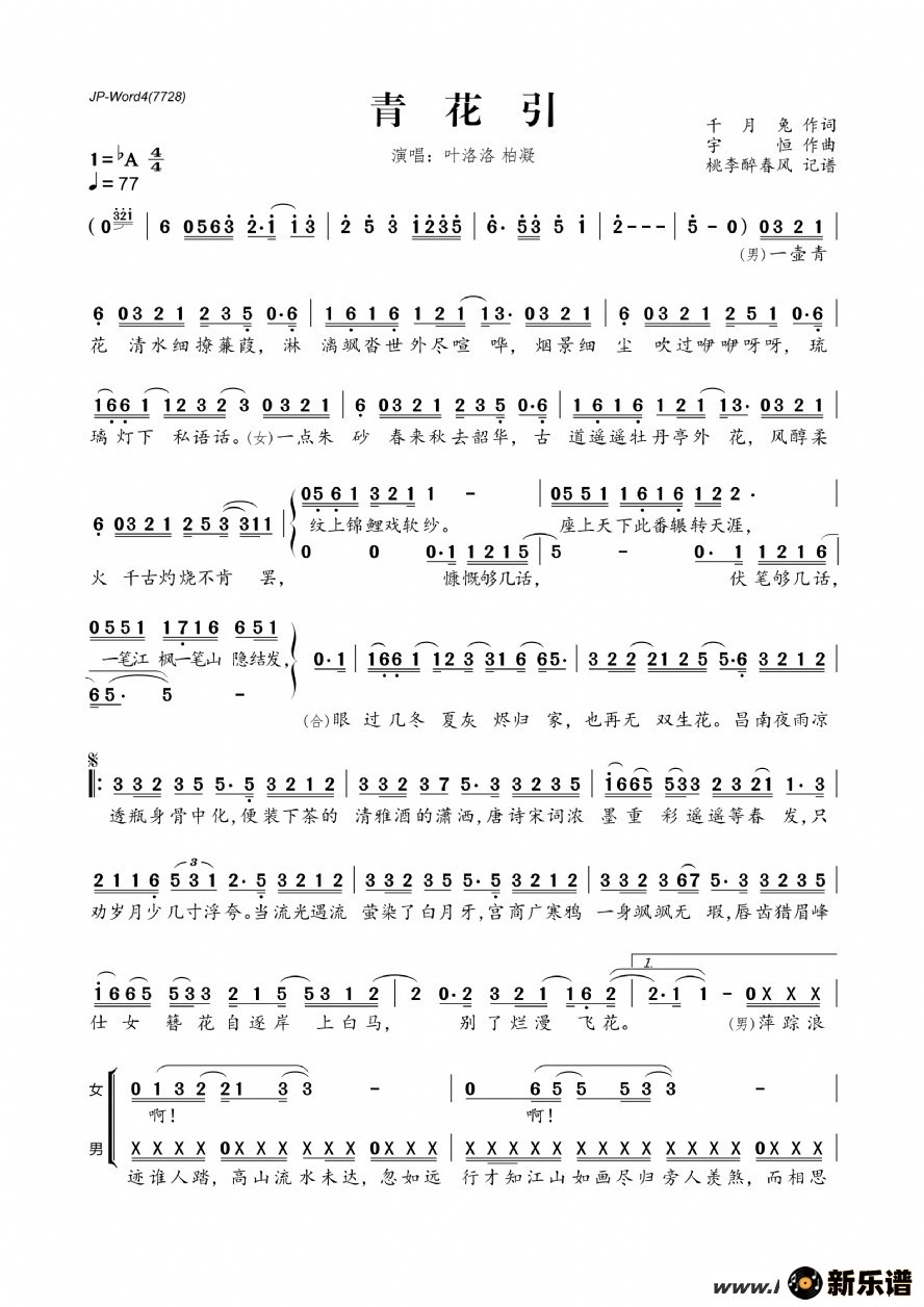 《青花引》简谱 叶洛洛/柏凝-桃李醉春风制谱