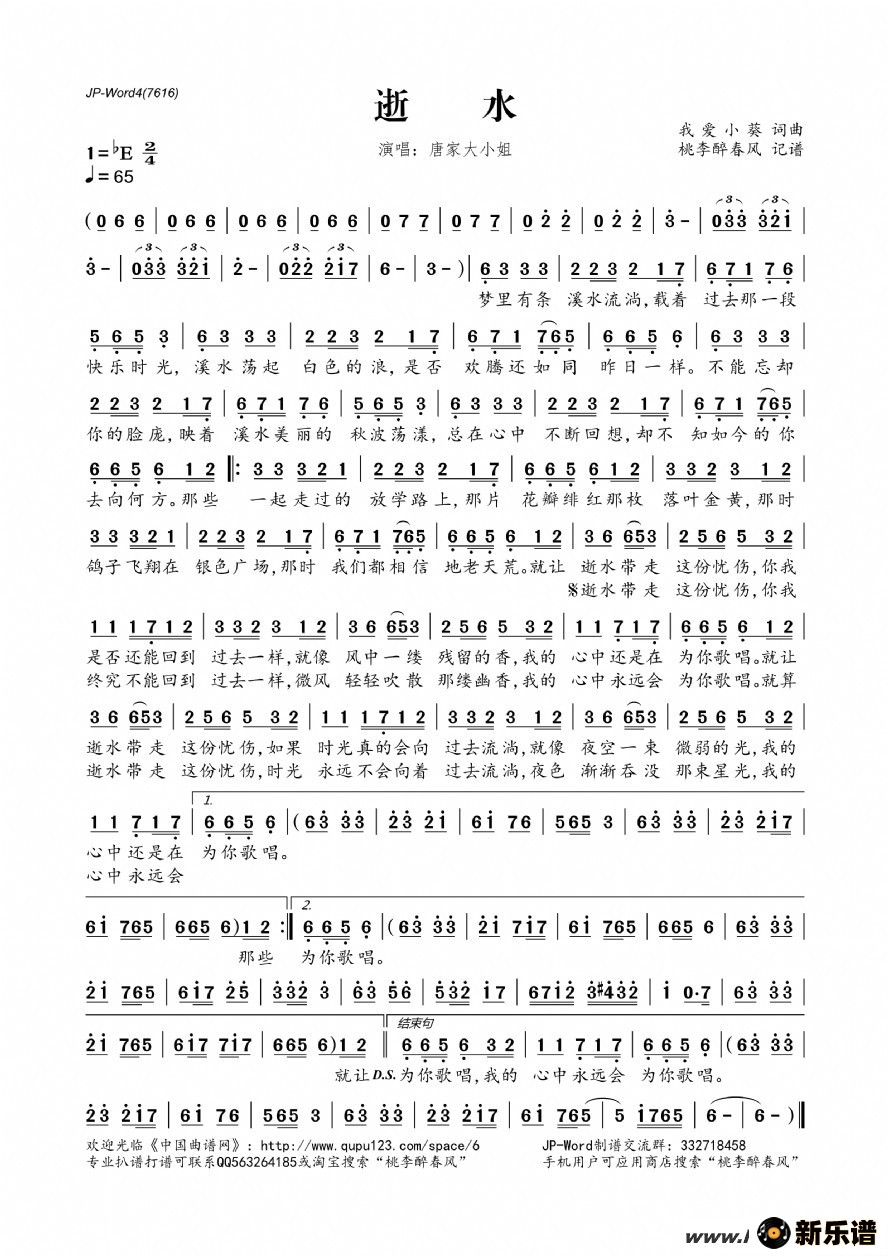 《逝水》简谱 唐家大小姐-桃李醉春风制谱