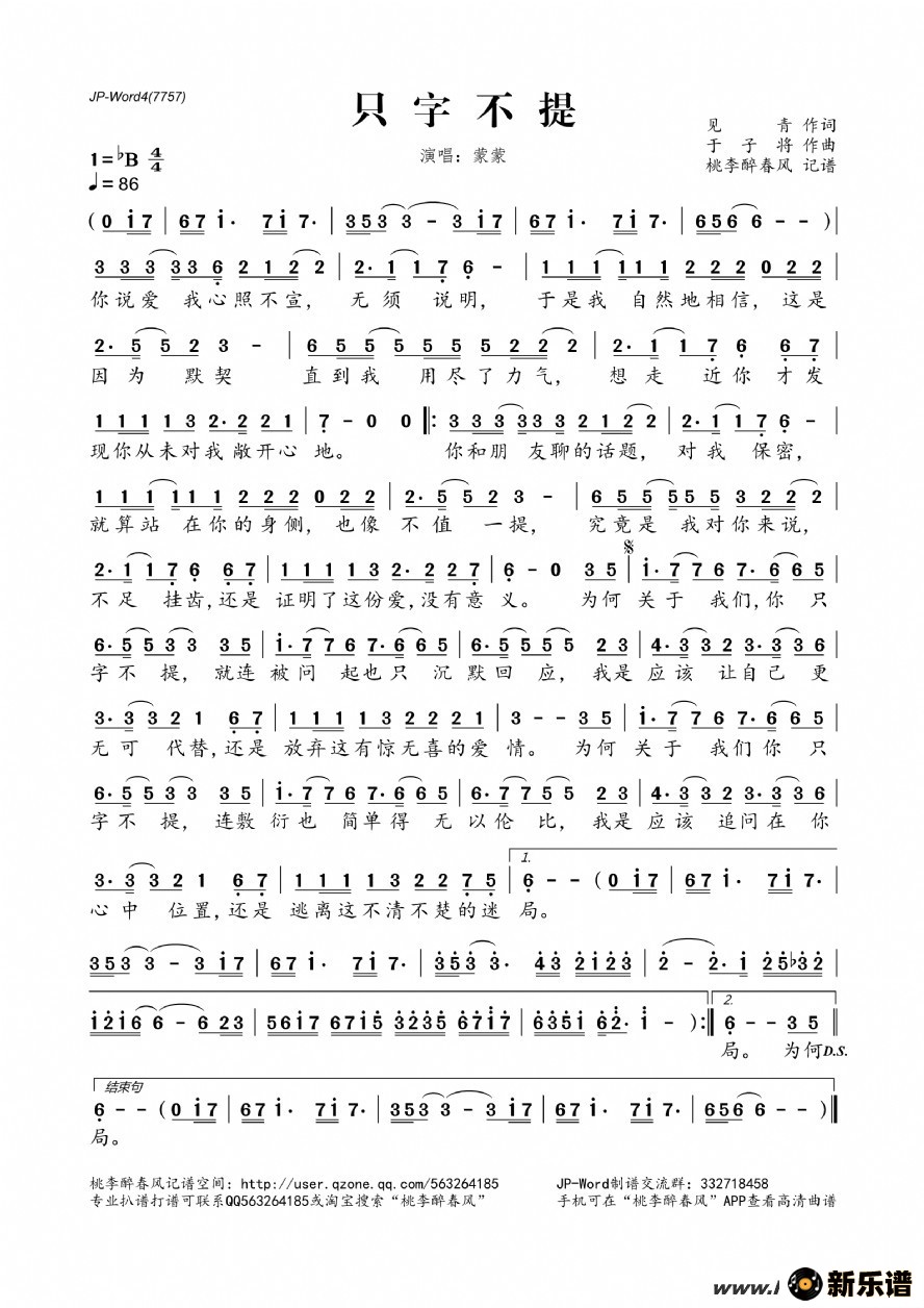 《只字不提》简谱 蒙蒙-桃李醉春风制谱