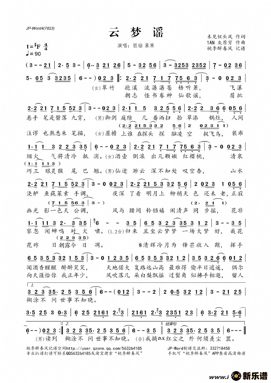 《云梦谣》简谱 银临/慕寒-桃李醉春风制谱