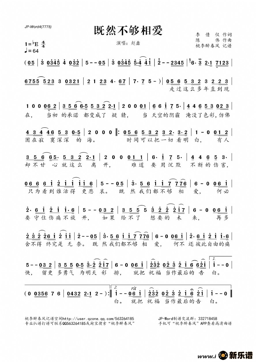 赵鑫演唱的既然不够相爱歌词,既然不够相爱简谱.