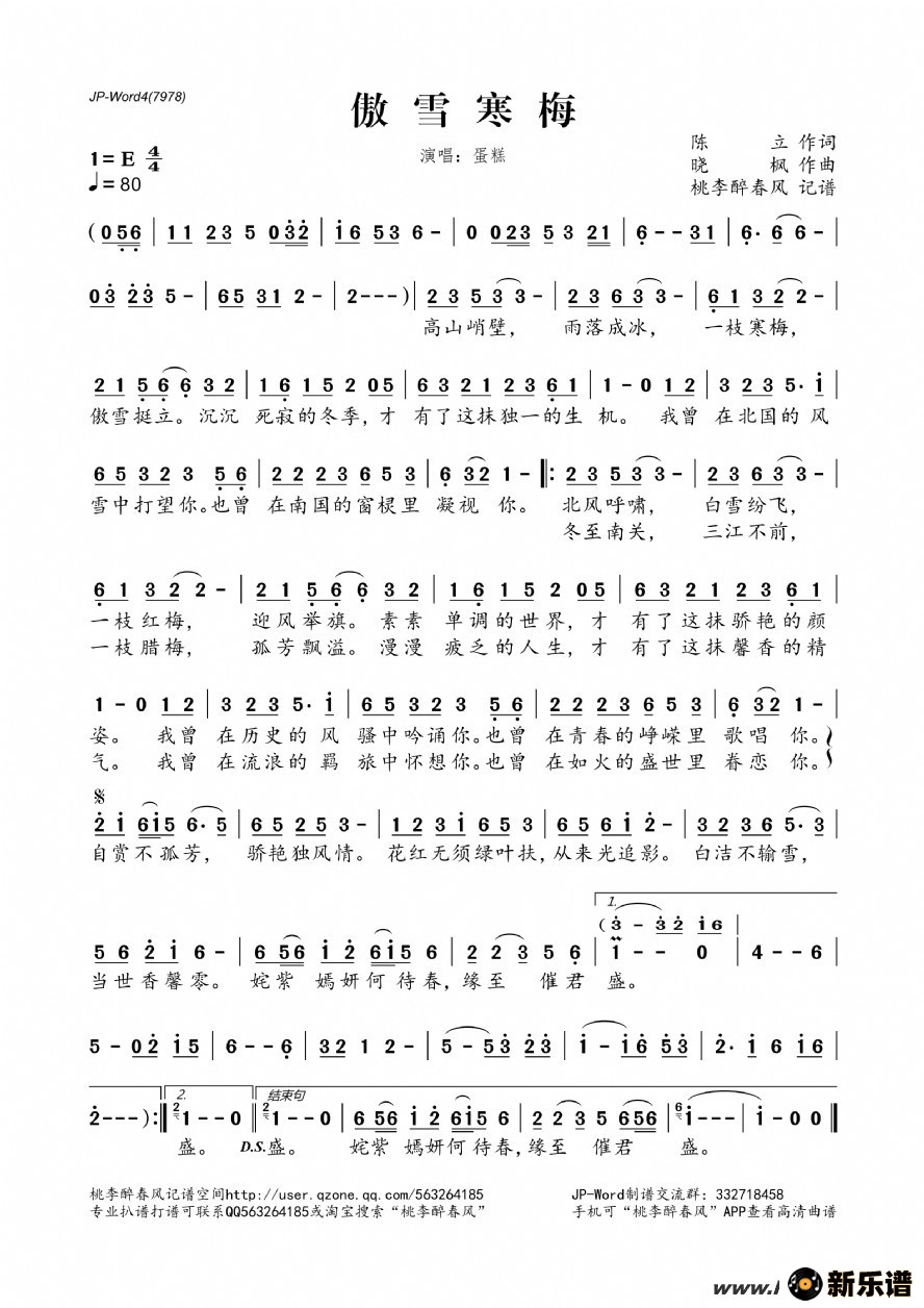 《傲雪寒梅》简谱 陈立-桃李醉春风制谱