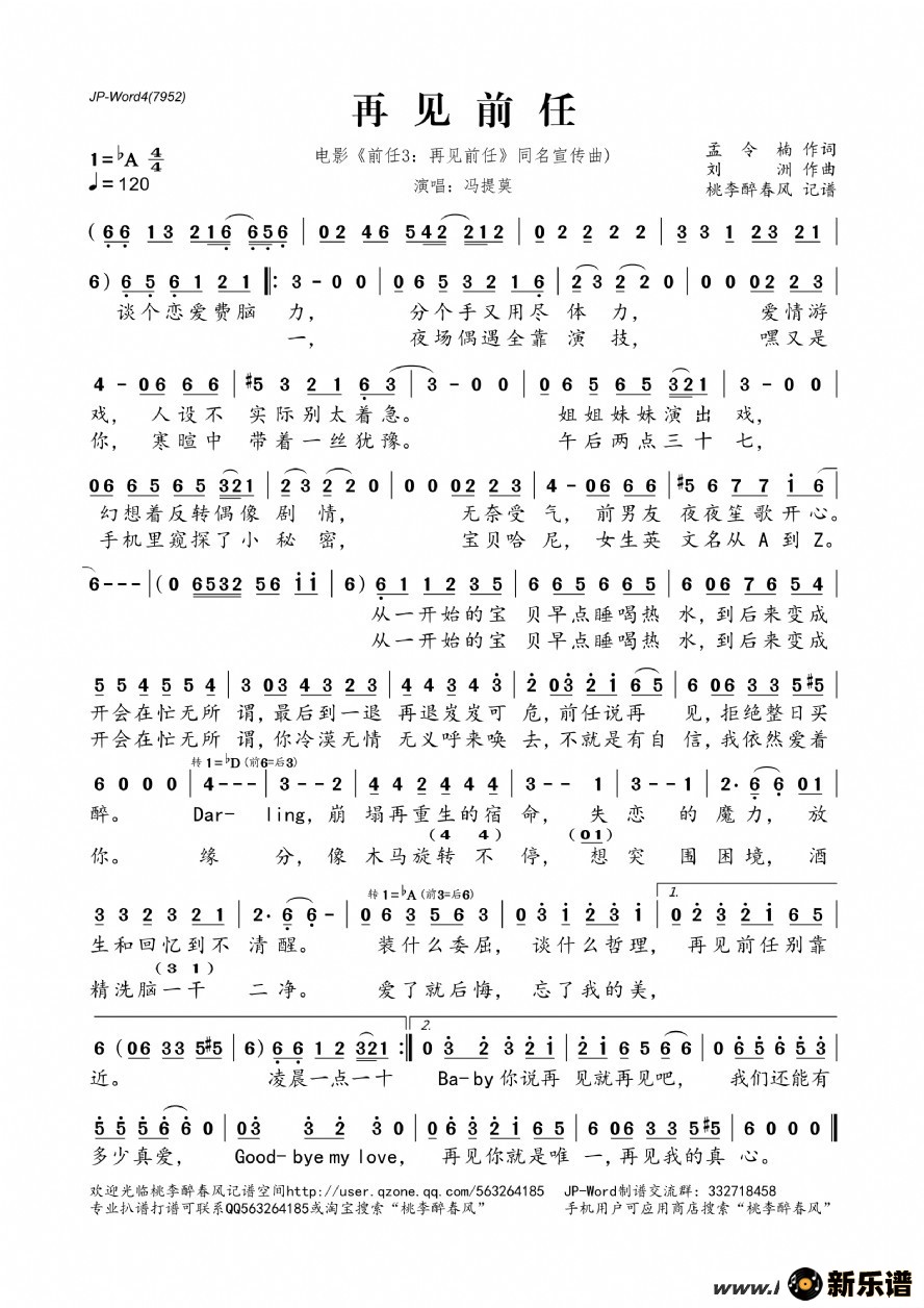 再见前任(电影《前任3:再见前任》同名宣传曲)冯提莫 冯提莫演唱的再见前任(电影《前任3:再见前任》同名宣传曲)歌词,再见前任(电影《前任3:再见前任》同名宣传曲)简谱. 此简谱由新乐谱会员 桃李醉春风 上传