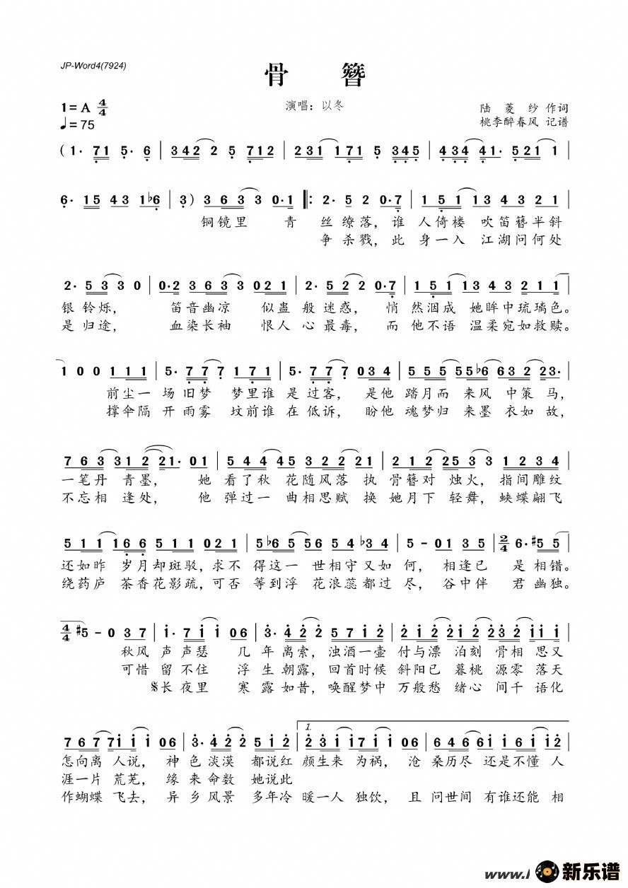 《骨簪》简谱 以冬-桃李醉春风制谱