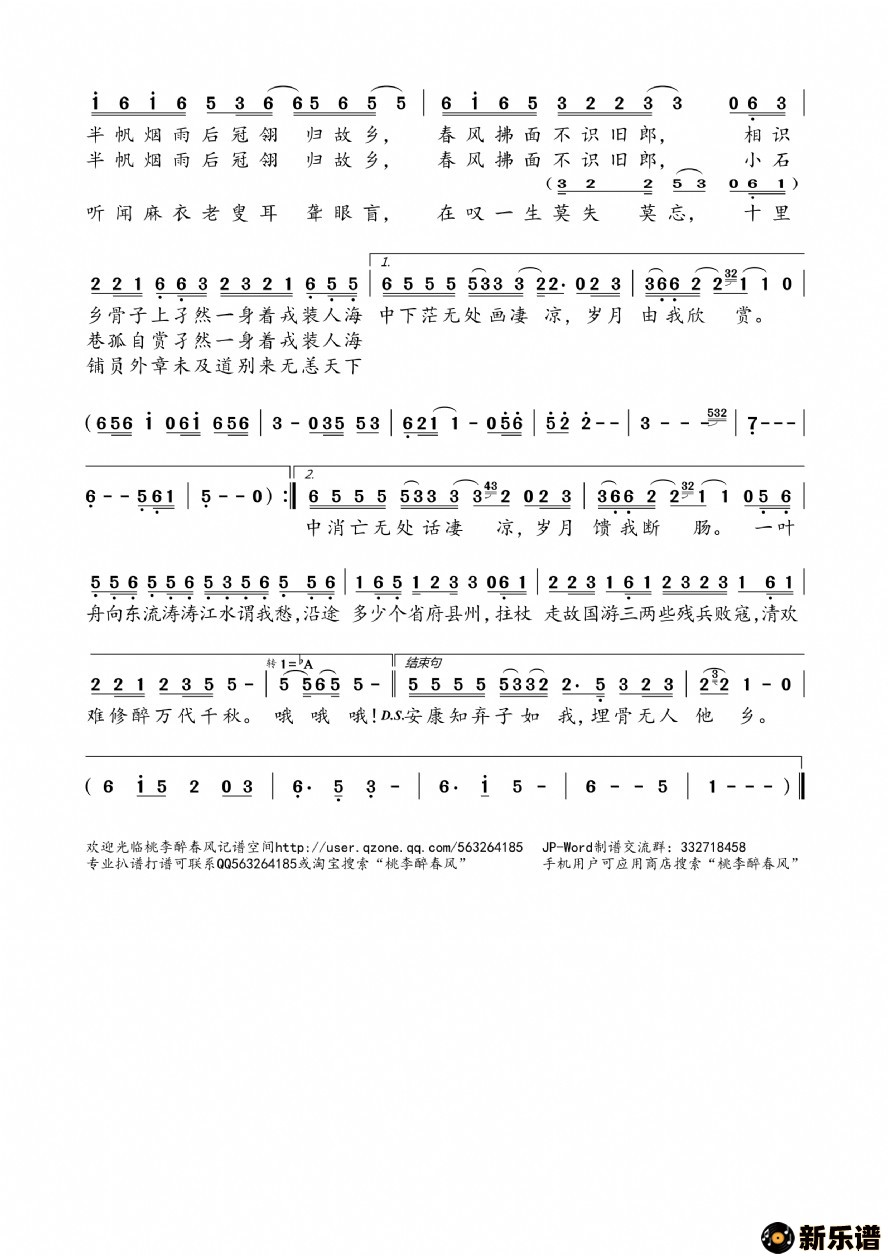 《兵家·埋骨他乡》简谱 河图-桃李醉春风制谱