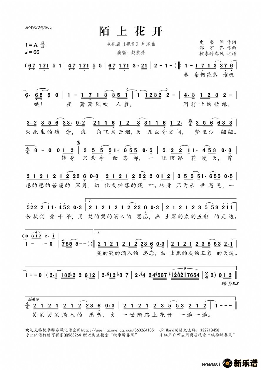 赵紫骅演唱的陌上花开(电视剧《艳骨》片尾曲)歌词,陌上花开(电视剧《艳骨》片尾曲)简谱.