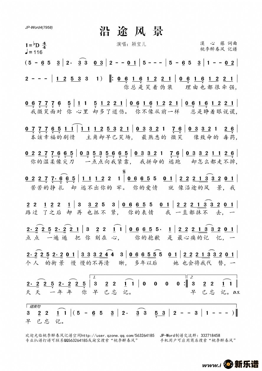 《沿途风景》简谱 颖宝儿-桃李醉春风制谱