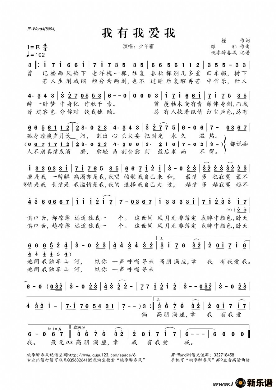 《我有我爱我》简谱 少年霜-桃李醉春风制谱