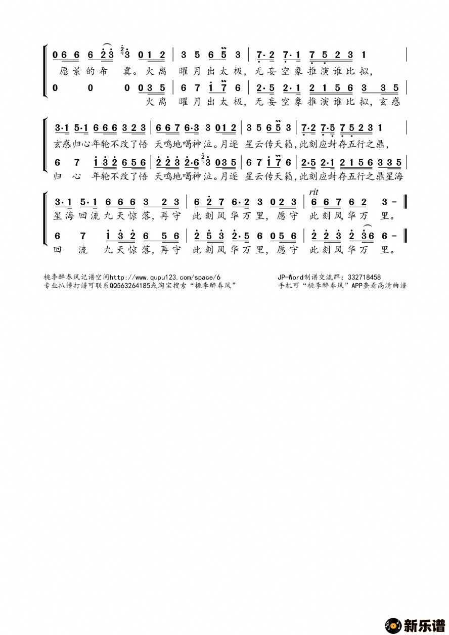 《述岚记》简谱 慕寒、糖瓷-桃李醉春风制谱