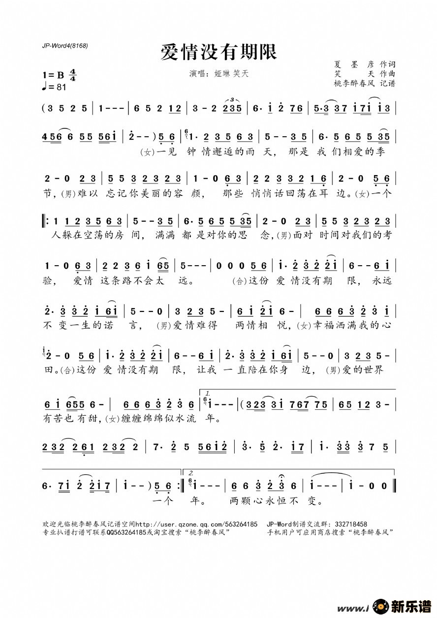 《爱情没有期限》简谱 娅琳、笑天-桃李醉春风制谱
