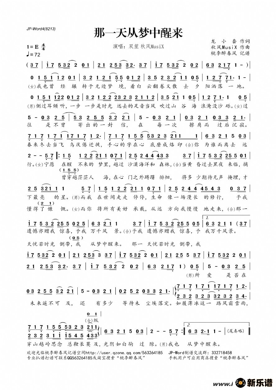 《那一天从梦中醒来》简谱 秋风MusiX/双笙-桃李醉春风制谱