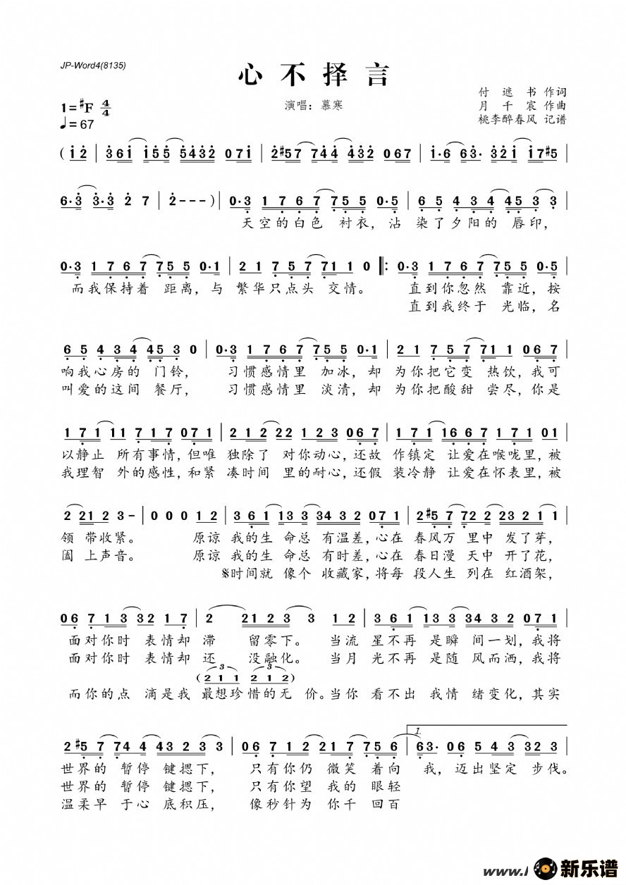 《心不择言》简谱 慕寒-桃李醉春风制谱