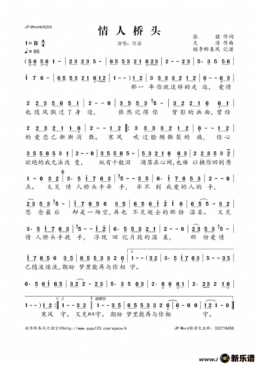 《情人桥头》简谱 雨涵-桃李醉春风制谱
