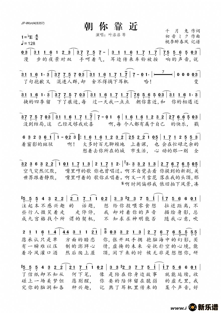 《朝你靠近》简谱 叶洛洛-桃李醉春风制谱