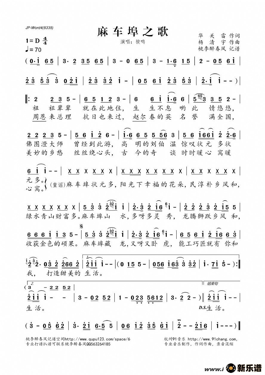 《麻车埠之歌》简谱 骏鸣-桃李醉春风制谱