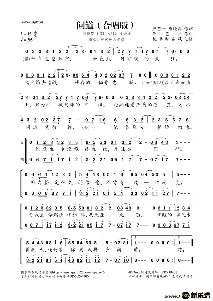 严艺丹/和汇慧演唱的问道歌词,问道简谱.