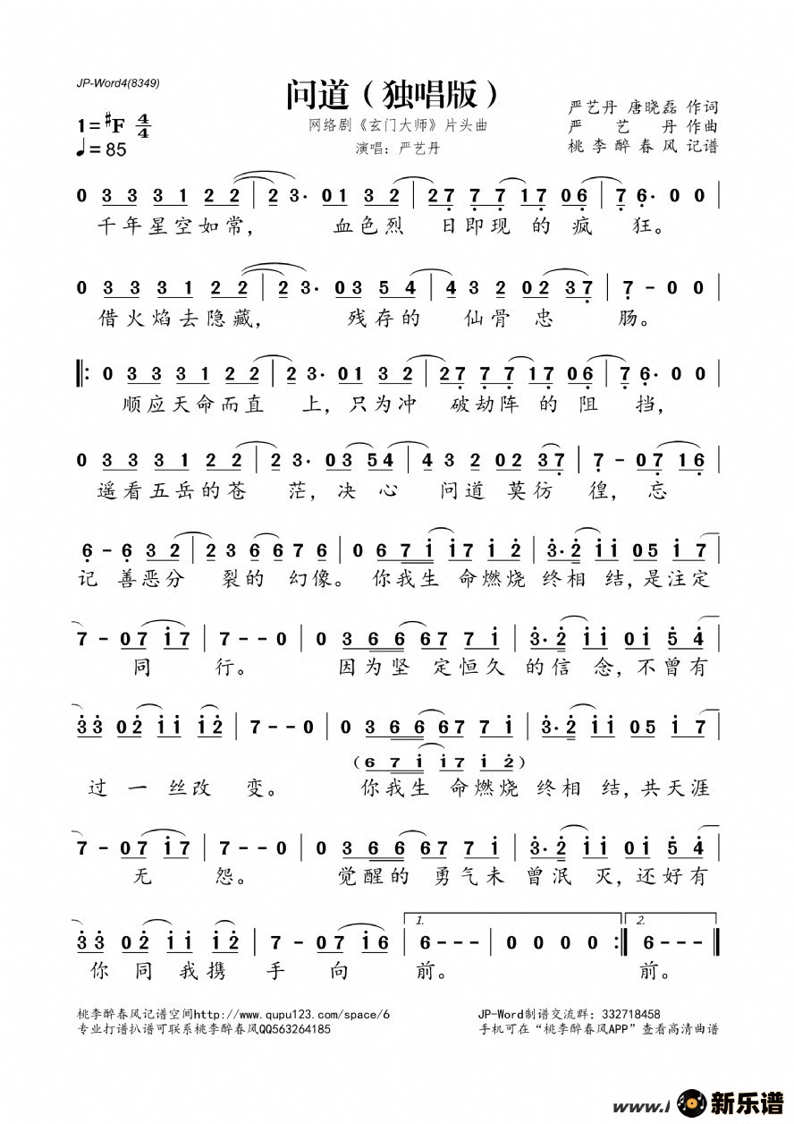 《问道》简谱 严艺丹-桃李醉春风制谱
