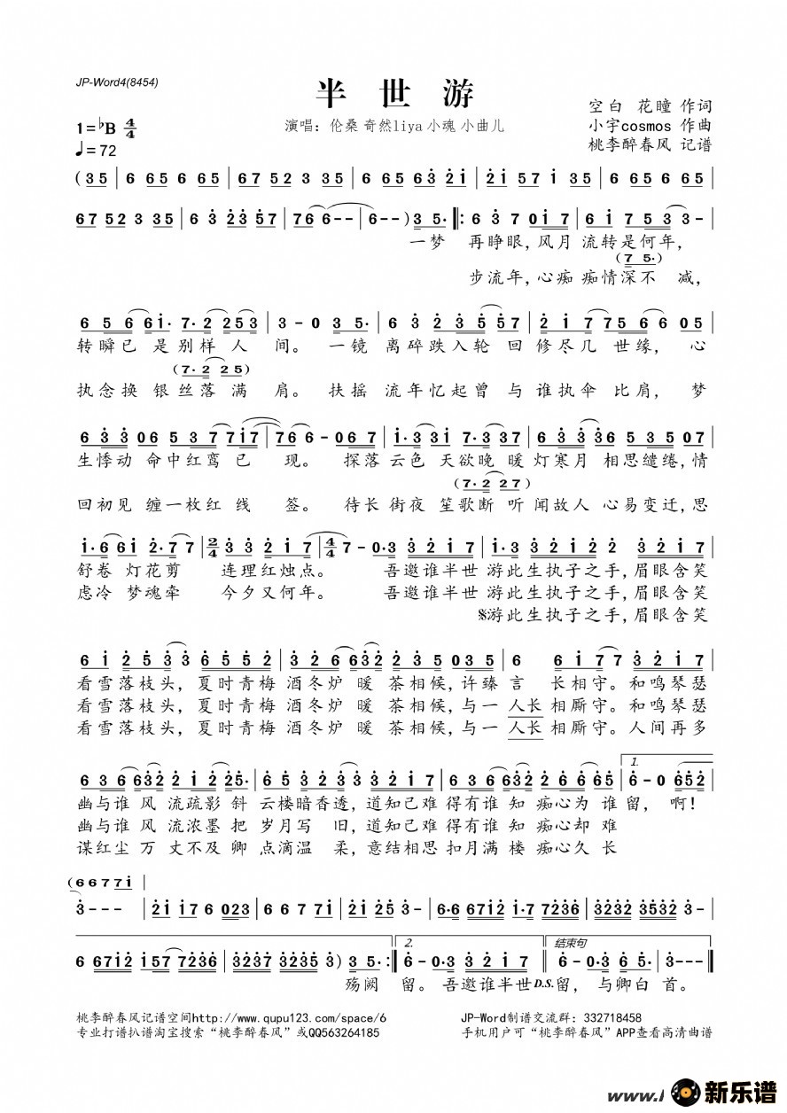 《半世游》简谱 伦桑、奇然liya、小魂、小曲儿-桃李醉春风制谱