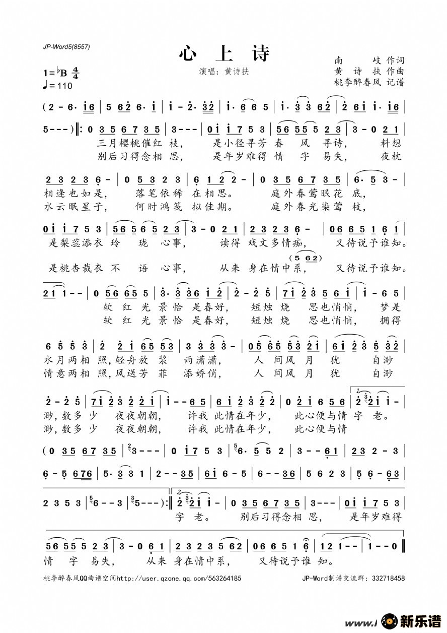《心上诗》简谱 黄诗扶-桃李醉春风制谱