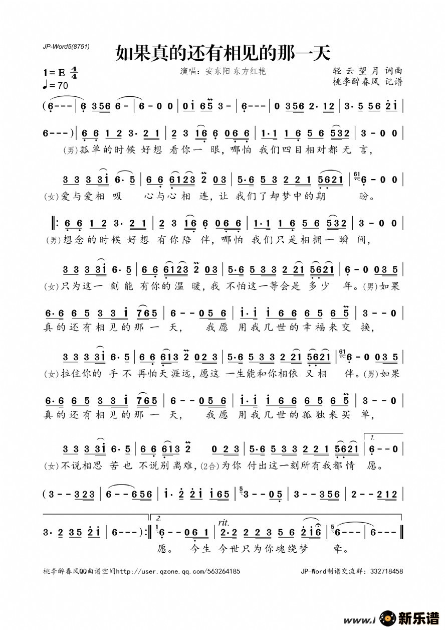 如果真的还有相见的那一天/安东阳/东方红艳 相关曲谱
