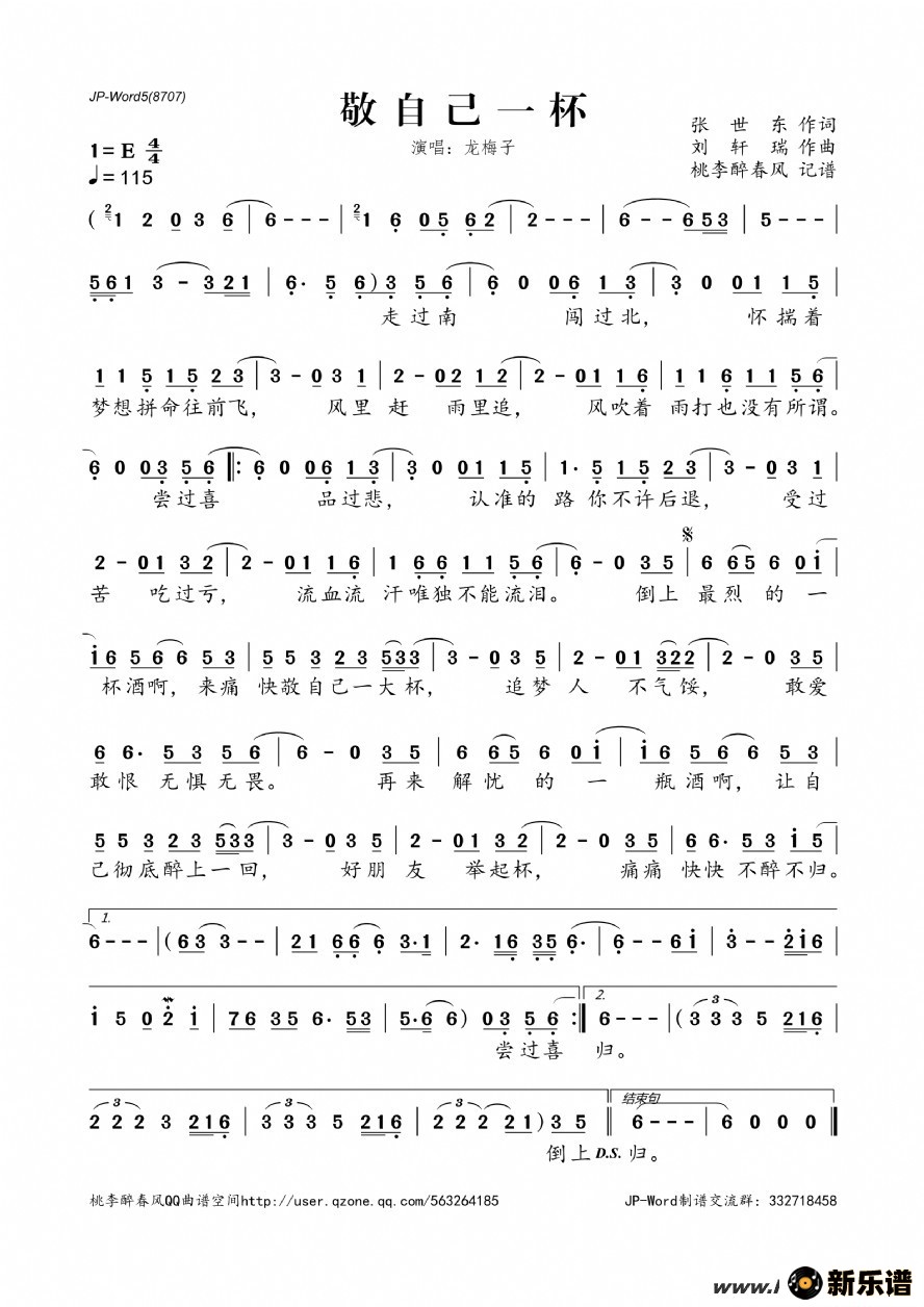 《敬自己一杯》简谱 龙梅子-桃李醉春风制谱