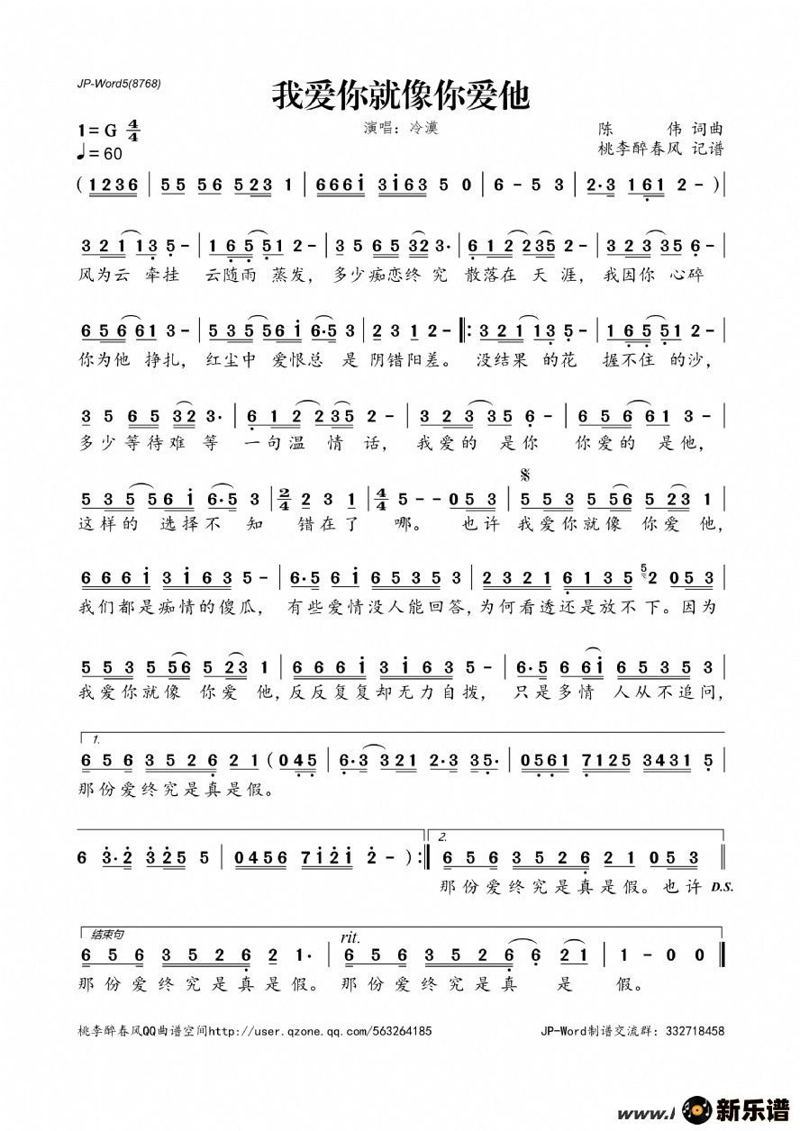 《我爱你就像你爱他》简谱 冷漠-桃李醉春风制谱