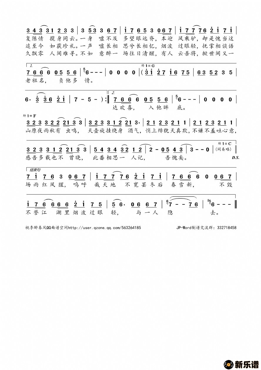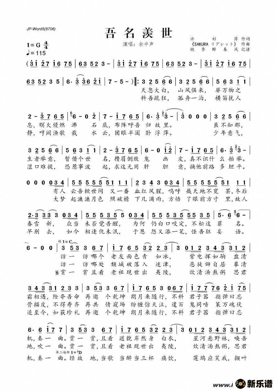《吾名羡世》简谱 余半声-桃李醉春风制谱