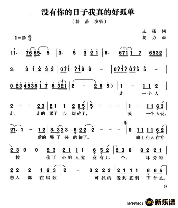 韩晶演唱的没有你的日子我真的好孤单歌词,没有你的日子我真的好孤单简谱.