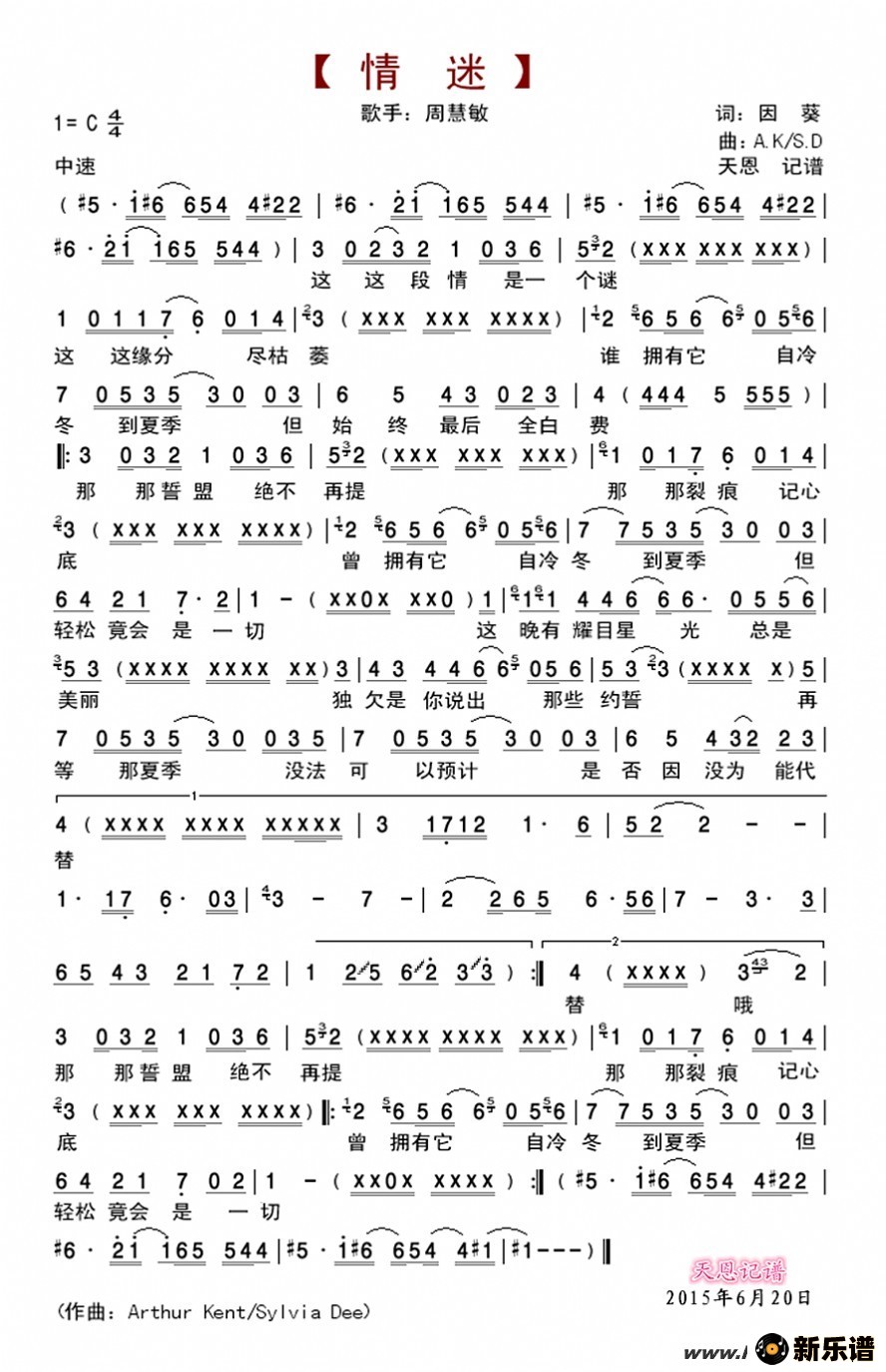 作词:因葵 作曲:Arthur Kent / Sylvia Dee