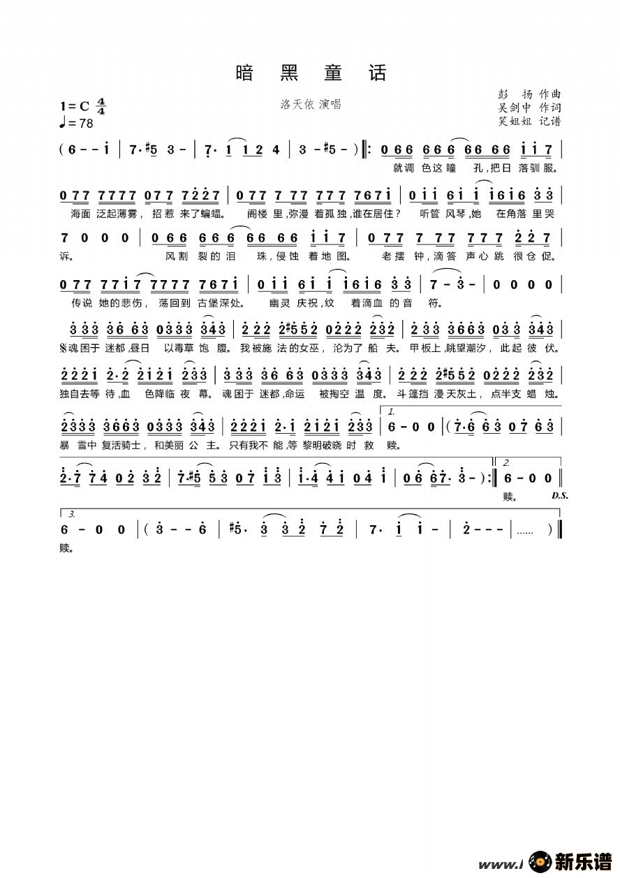 洛天依演唱的暗黑童话歌词,暗黑童话简谱.