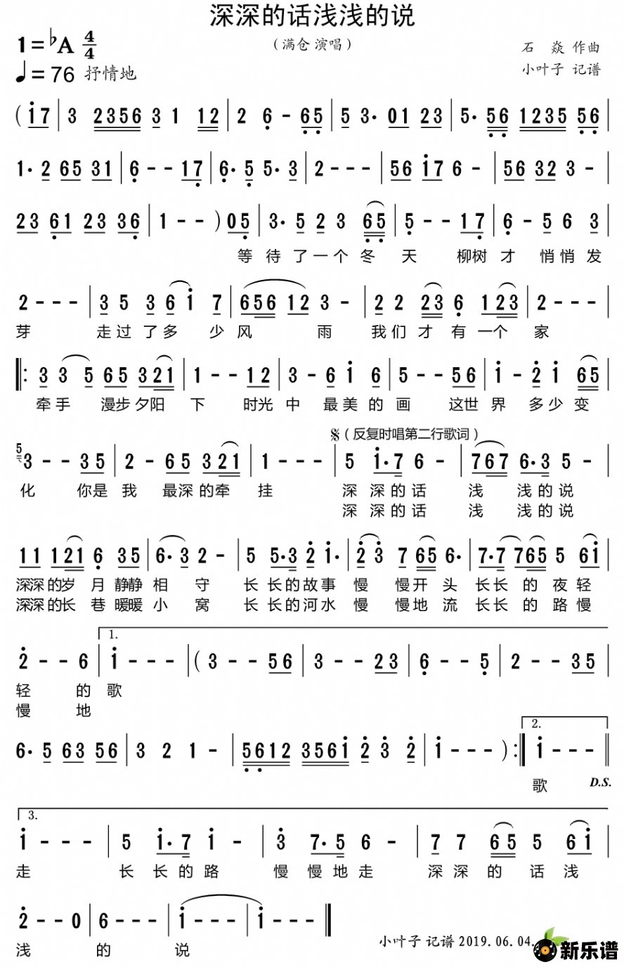 《深深的话浅浅的说》简谱 满仓-小叶子制谱